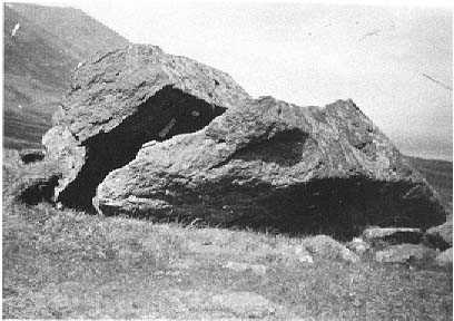 Hann minnist þess að hafa séð tvo stráka sem voru að vinna inni í fjárhúsunum stingast hvorn ofan á sinn taðhausinn, síðan hrökklaðist hann aftur á bak og man ekki meira, fyrr en jörðin var aftur orðinn kyrr, enda munu ósköpin ekki hafa tekið nema nokkrar sekúndur. Honum varð litið upp í fjallið og sá að fannirnar sem stuttu áður höfðu verið skjannahvítar , voru nú að verða röndóttar af aurskriðum. Allt var kyrrt og hljótt, en nú fannst honum kyrrðin búa yfir svikum og hann óskaði þess að það hvessti rækilega eða færi allavega að rigna. |