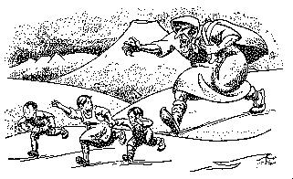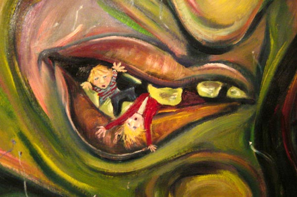 Börn gægjast úr poka Grýlu - Brian Pilkington -