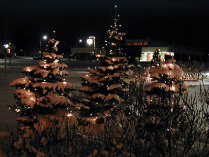 Aðfaranótt 11. des kom jólasnjórinn, falleg tré á ráðhúslóðinni ( 11. des)