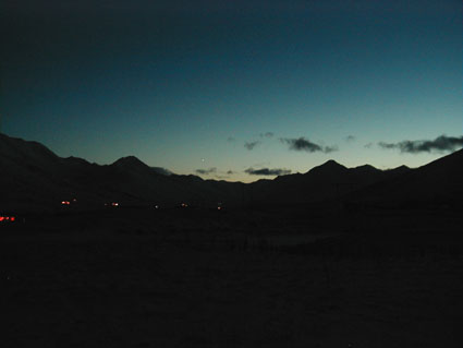 Horft fram Svarfaðardal í ljósaskiptunum ( 17. des )